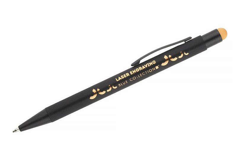 NIRO is a modern metal ballpoint pen featuring a distinctive engraving effect. The engraving colour closely matches the colour of the touch tip, creating a coherent and elegant personalised finish. The aluminium barrel is coated with a rubberised soft-touch surface, ensuring a comfortable and secure grip during everyday use. Black finish details give the pen a solid and contemporary character, while the automatic push-button mechanism provides convenient operation.